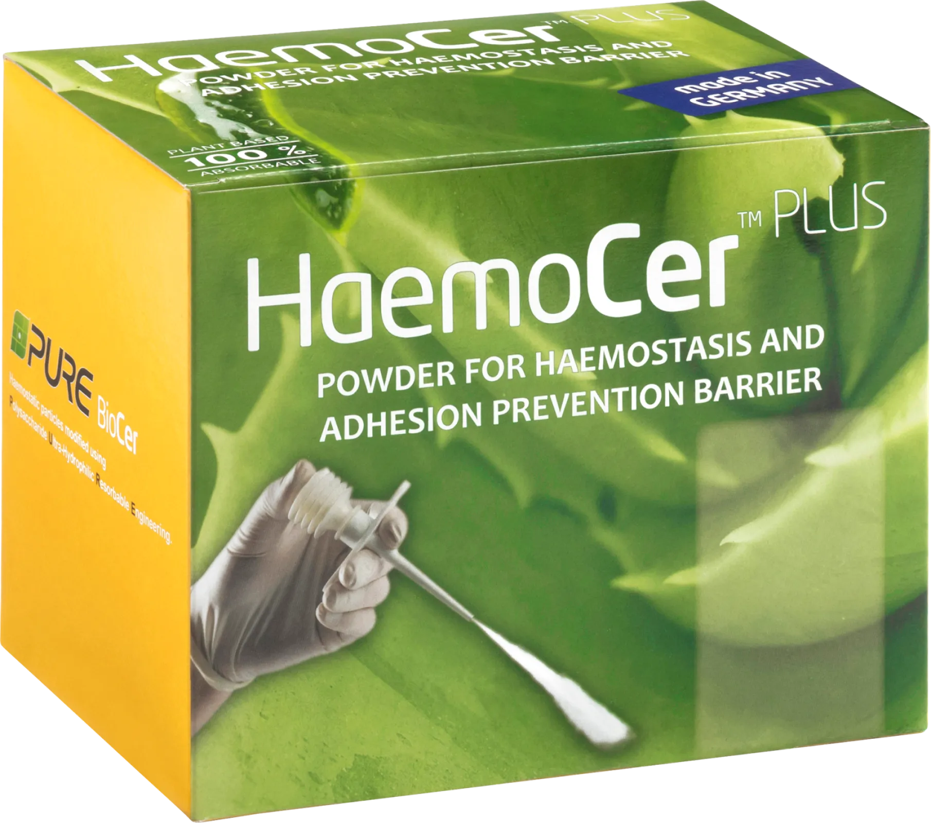 HaemoCer PLUS is a herbal powdered hemostatic agent for supportive haemostasis (bleeding control) and adhesion prevention during surgical procedures. It consists of 100% purified, plant-based starch with no added animal or human components.